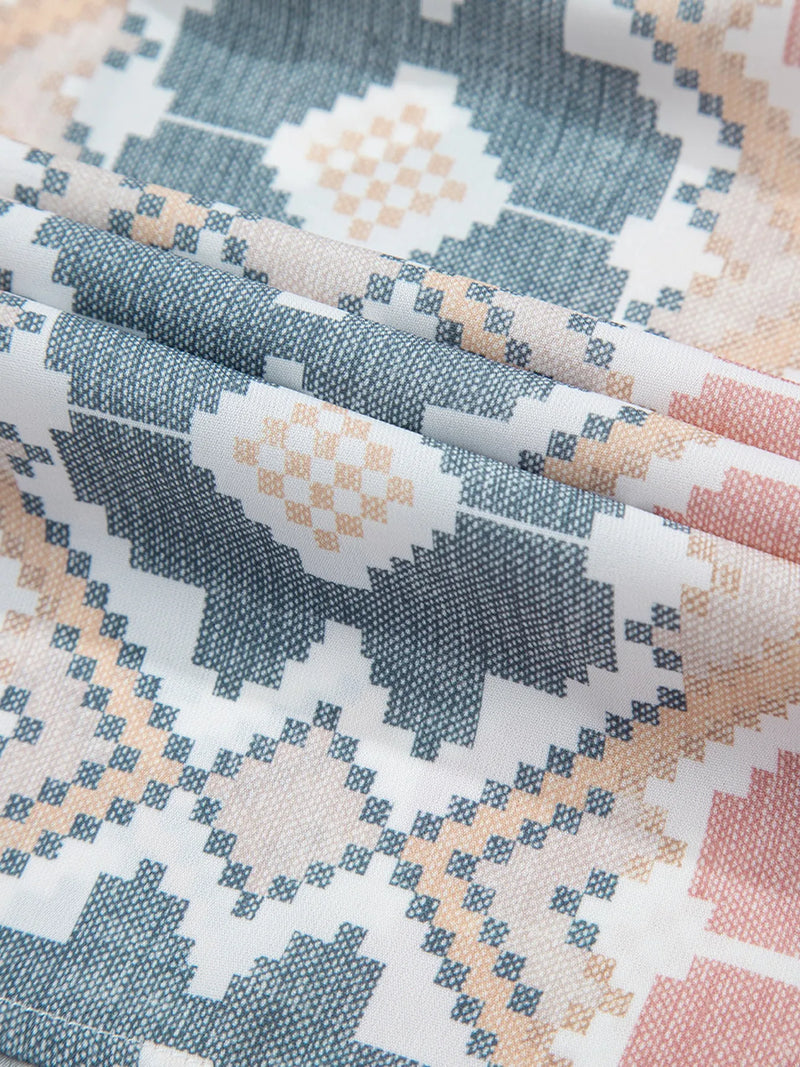 Elena Bohemian Geometric Print Blouse with Tassel Tie