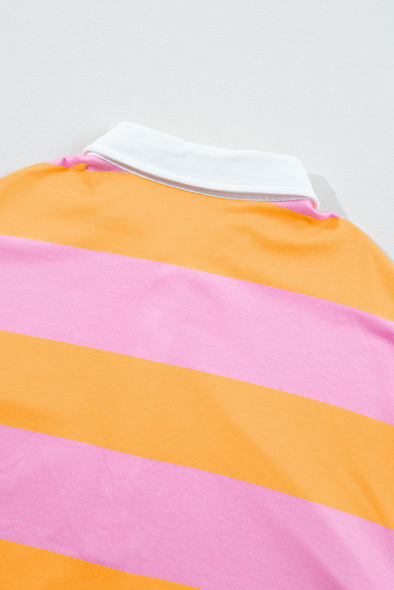 Contrast Striped Collared Neck Long Sleeve Sweatshirt