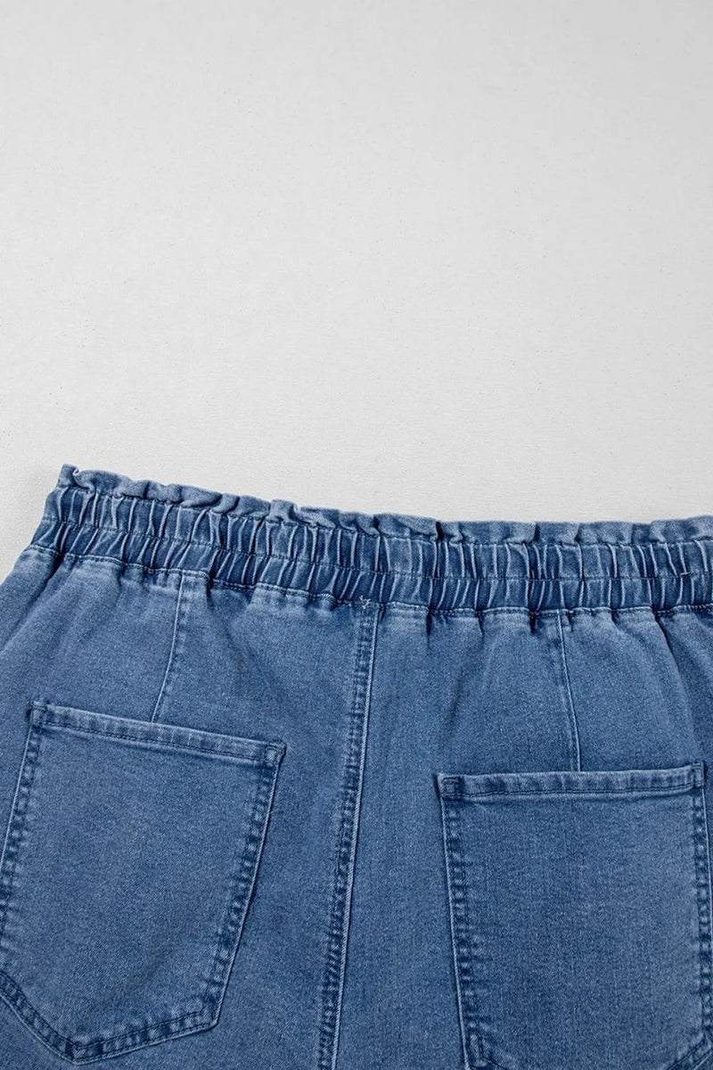 Kenna Drawstring High Waist Denim Shorts with Pockets