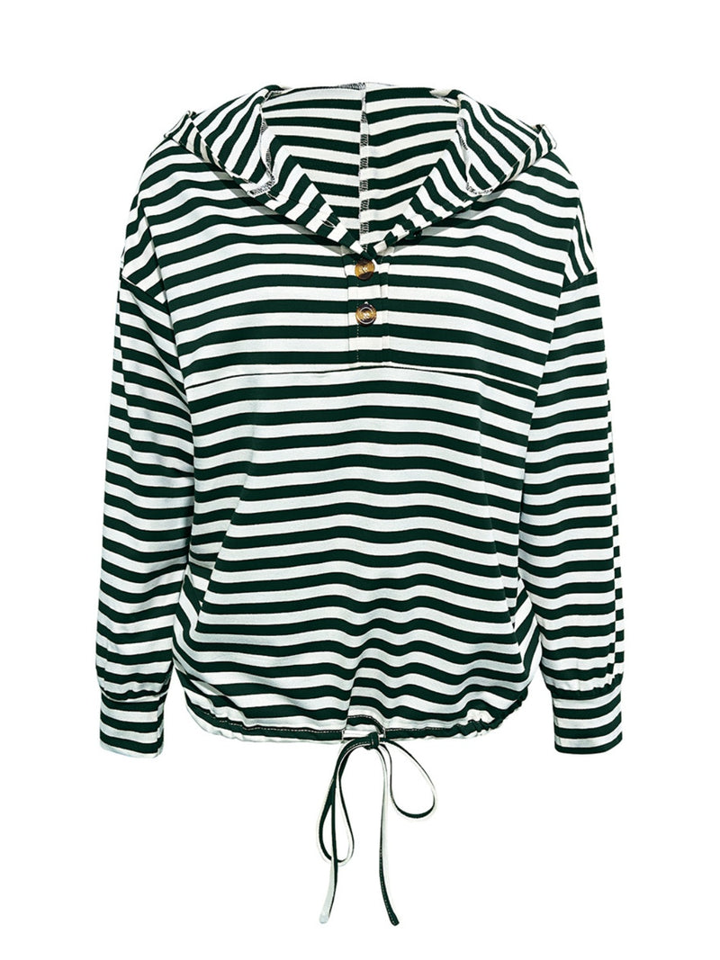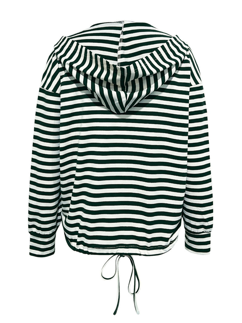 Annie Drawstring Striped Long Sleeve Hoodie