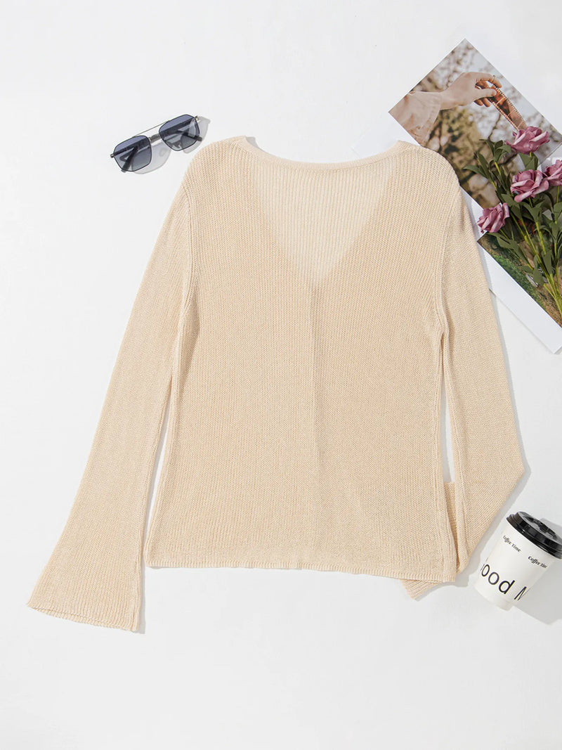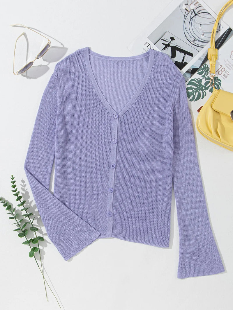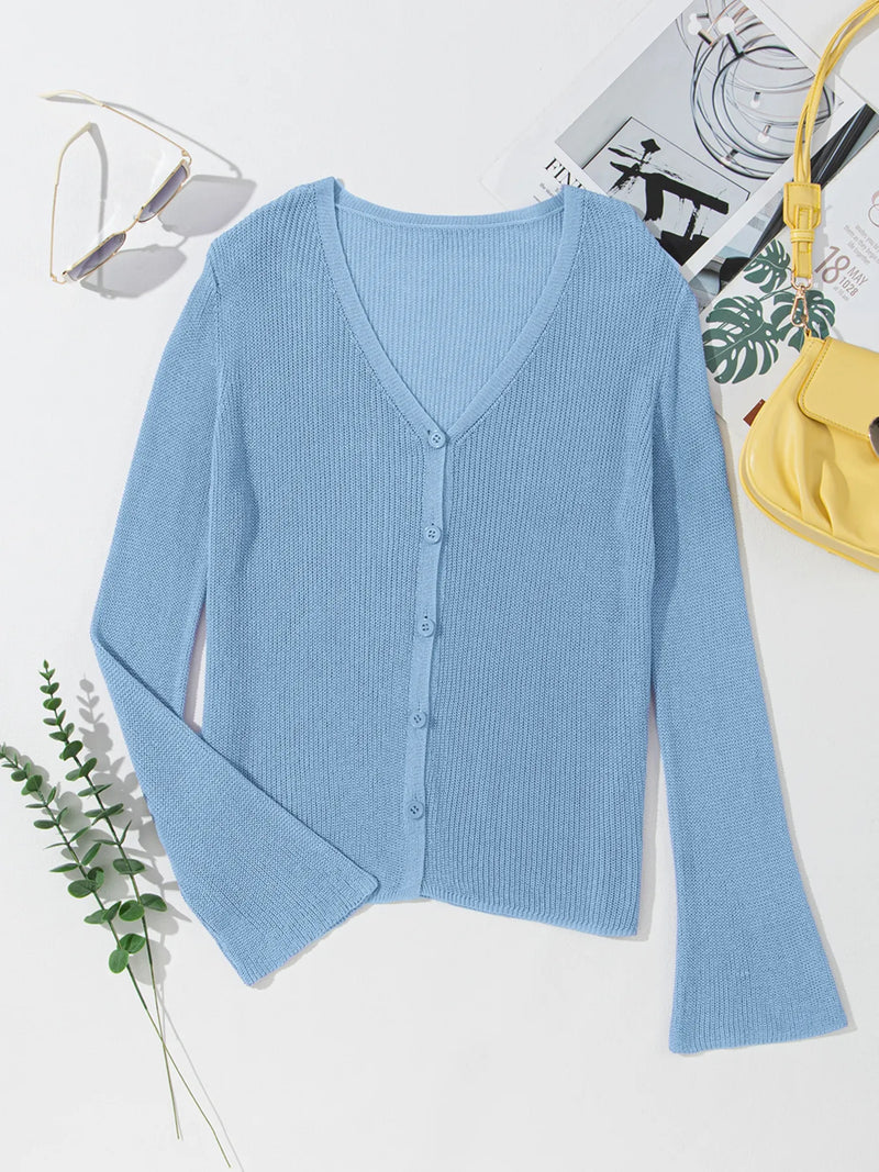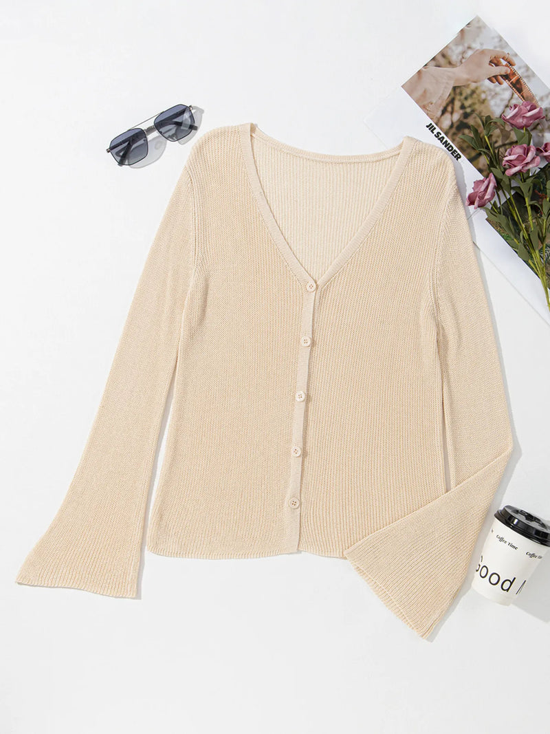 Tatianna Lightweight V Neck Button Front Bell Sleeve Cardigan