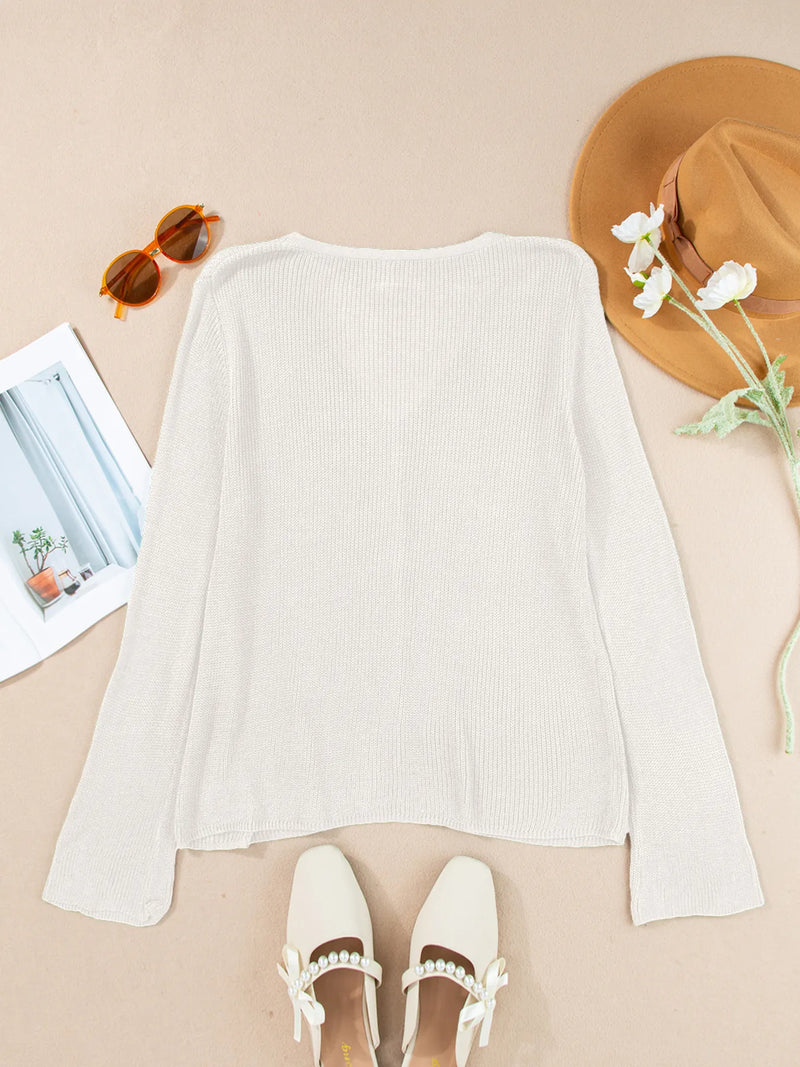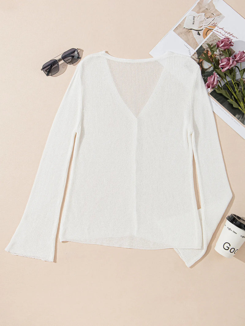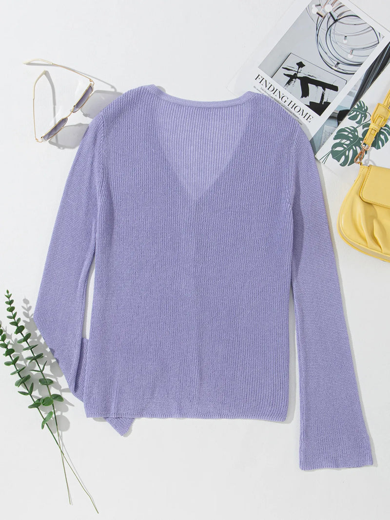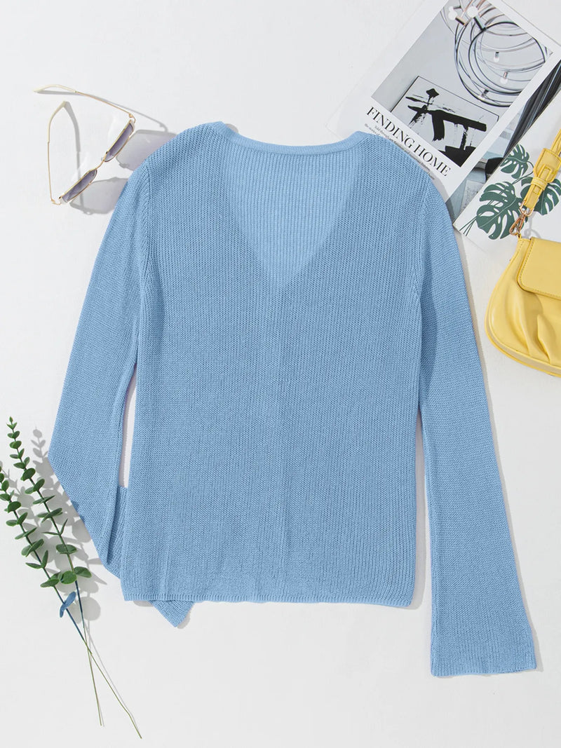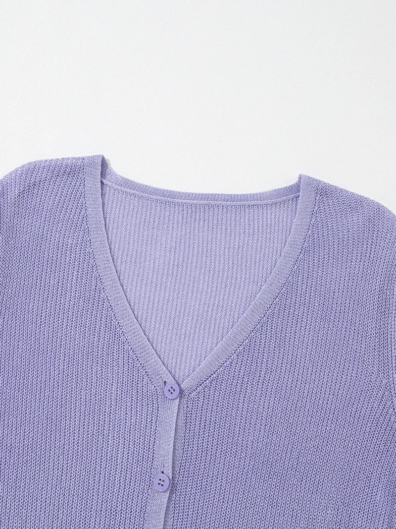 Tatianna Lightweight V Neck Button Front Bell Sleeve Cardigan