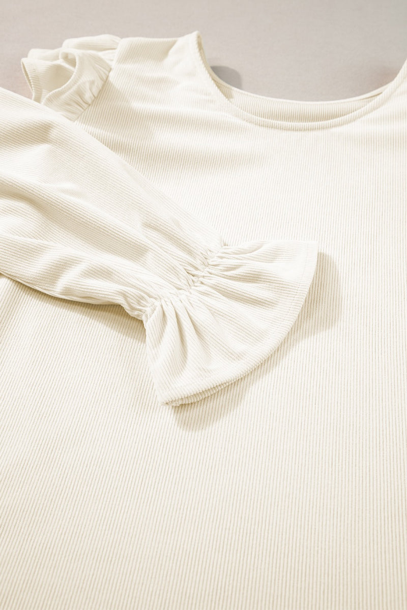 Reya Ruffled Round Neck Flounce Sleeve Top
