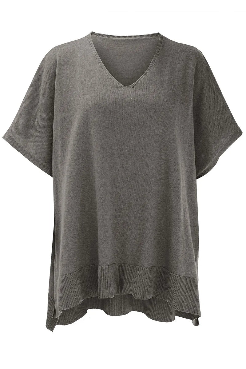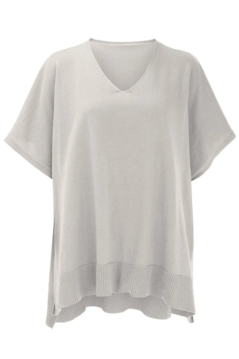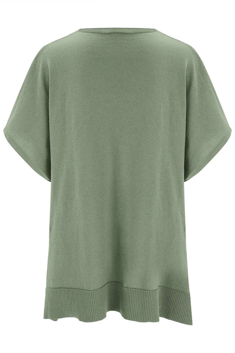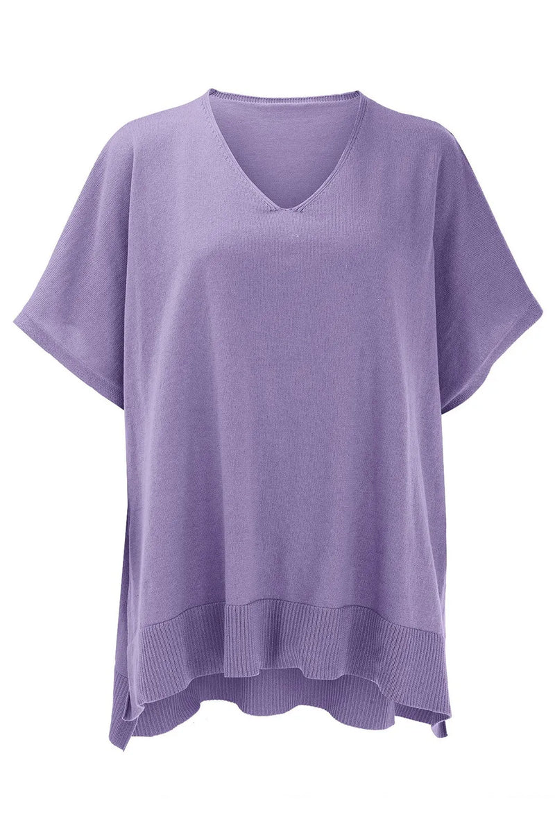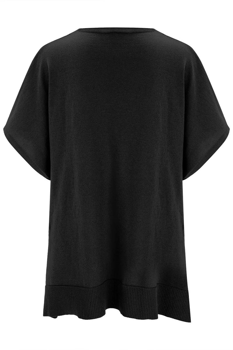 Kara Slit V-Neck Half Sleeve Knit Top