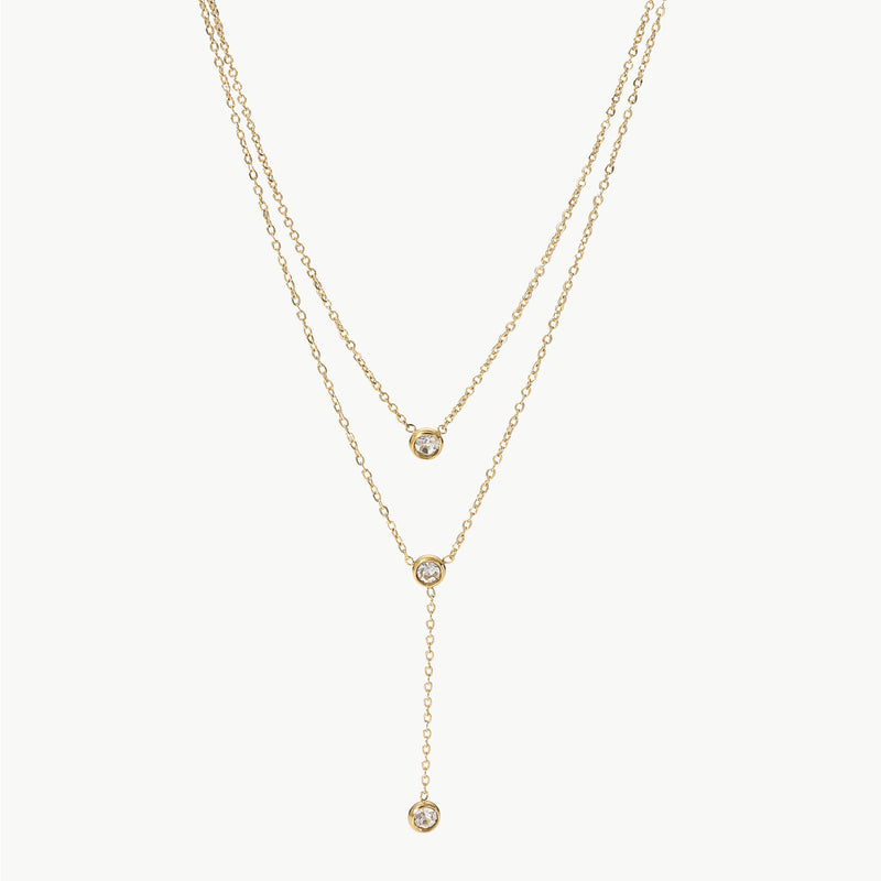 Stainless Steel Zircon Double-Layered Necklace