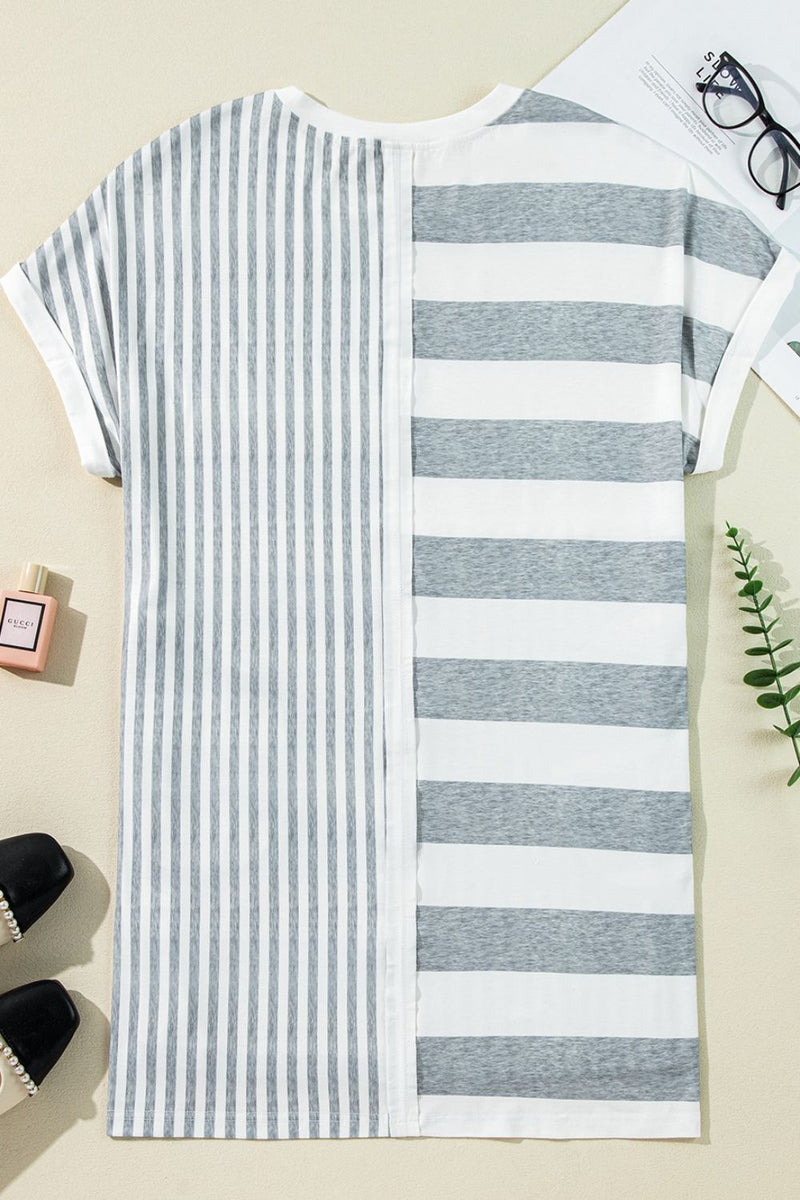 Milly Stripe Mixed Short Sleeve Shift Mini Tee Dress