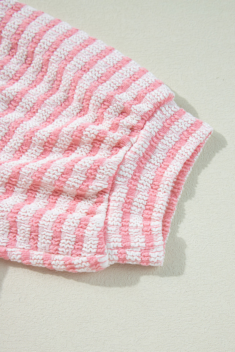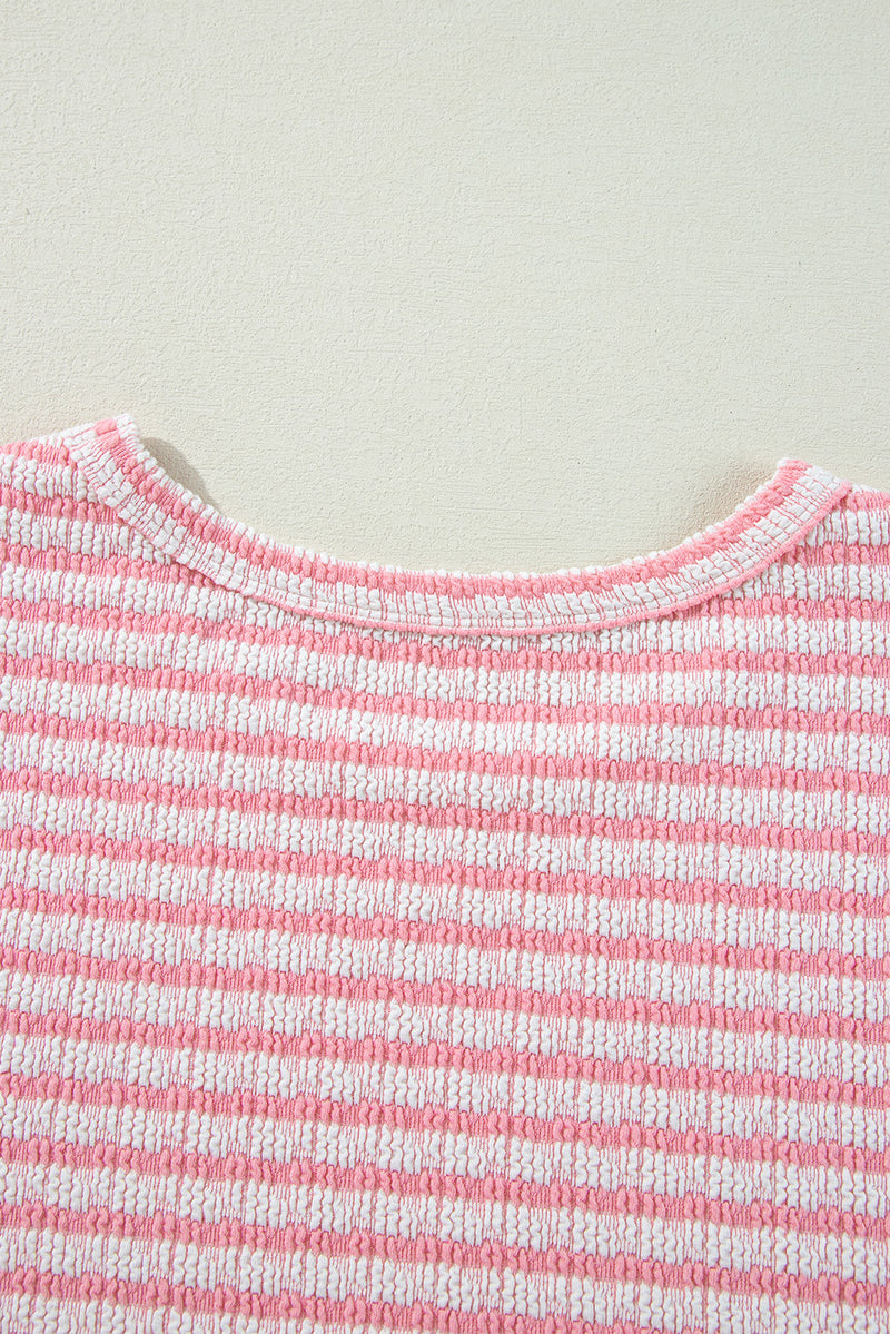 Bobbie Stripe Textured Puff Sleeve Crewneck Top
