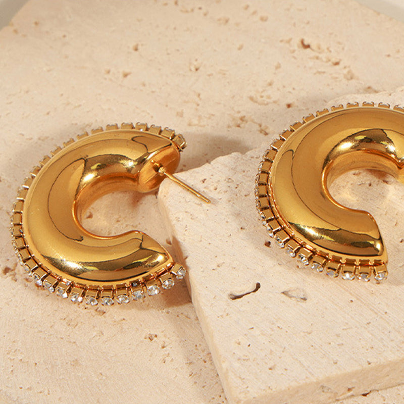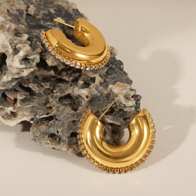 Titanium Steel Inlaid Zircon C-Hoop Earrings